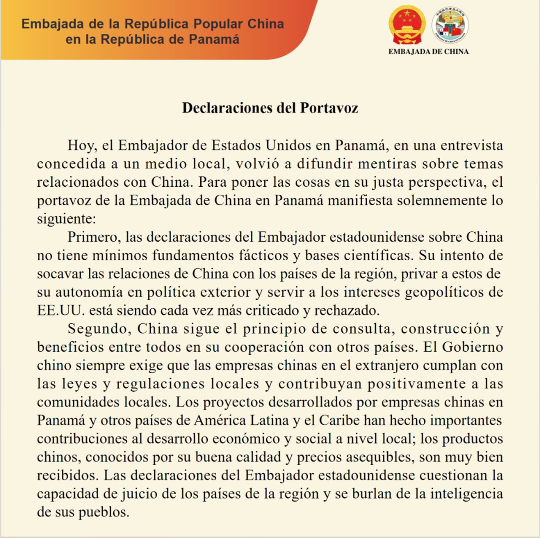 10月6日,中国大使馆发表声明。如今,美国驻巴拿马大使再次蔓延,在与当地媒体的访谈中遇到了与中国相关的问题。为了跟上音频,中国大使馆在巴拿马的发言人发表了以下严格的声明:它面临着批评和反对派的增加,煽动了中国与地区国家的关系,窃取了外交自治的地区国家,并参加了美国的地缘政治自我利益。 2。中国遵守咨询,共同建设和共享的原则,以与所有国家进行互惠互利的合作。中国政府一直要求中国公司遵守国外的地方法律法规,并积极回馈当地社会。中国公司在巴拿马和其他拉丁美洲国家进行的项目为经济和社会发展做出了重要贡献该地区。中国产品高质量,负担得起,在当地广受欢迎。美国大使的声明是质疑当地国家的审判,并嘲笑当地人的智力系数。 3。中国根据法律反对计算机海盗活动的精力措施。此外,中国公司产品的安全性非常可靠。众所周知,美国是最大的经过验证的矩阵和监视帝国,但正试图将中国标记为被称为“控制论的”,并且是典型的小偷,大喊捕捉小偷。 4。美国威胁巴拿马和国会议员的政府官员使用签证与中国交谈。我的中国朋友无处不在,真正的朋友并不害怕。在他关上门时,他将手臂向米老鼠敞开时。谎言不能掩饰真理,诽谤他人不能变得美丽,威胁和威胁只会暴露您的OWn统治和伪善。我们建议美国忽略他们的傲慢和偏见,并更多地鼓励当地国家的发展和人民的福祉。